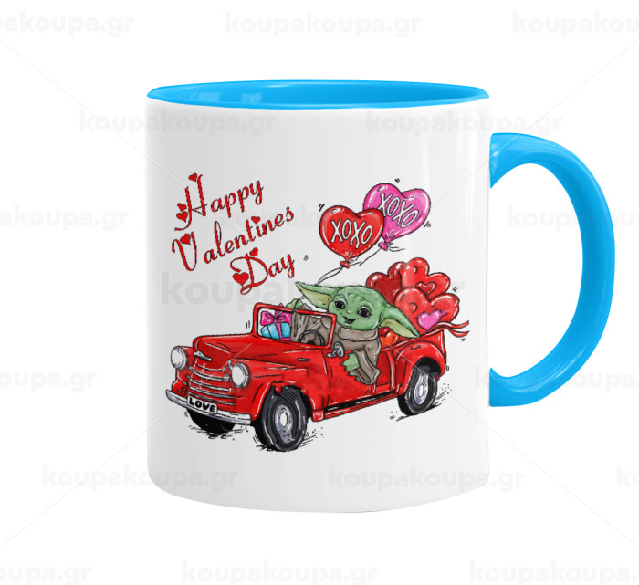 Yoda, happy valentines day (xoxo), Mug colored light blue, ceramic, 330ml