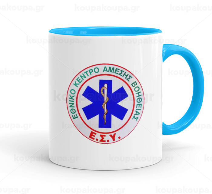 ΕΚΑΒ, Mug colored light blue, ceramic, 330ml