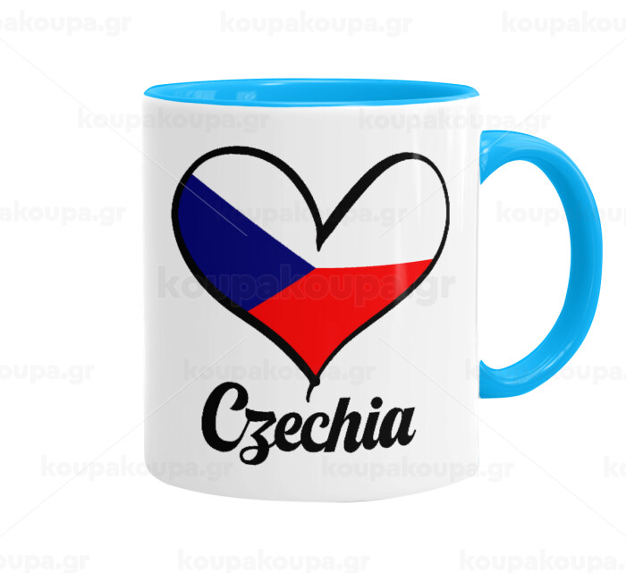 Czechia flag, Mug colored light blue, ceramic, 330ml