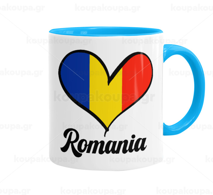 Romania flag, Mug colored light blue, ceramic, 330ml