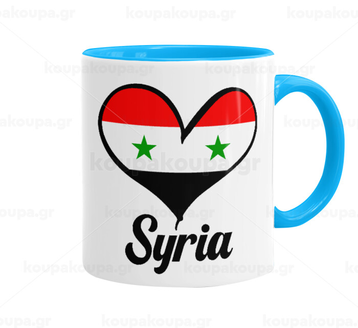 Syria flag, Mug colored light blue, ceramic, 330ml