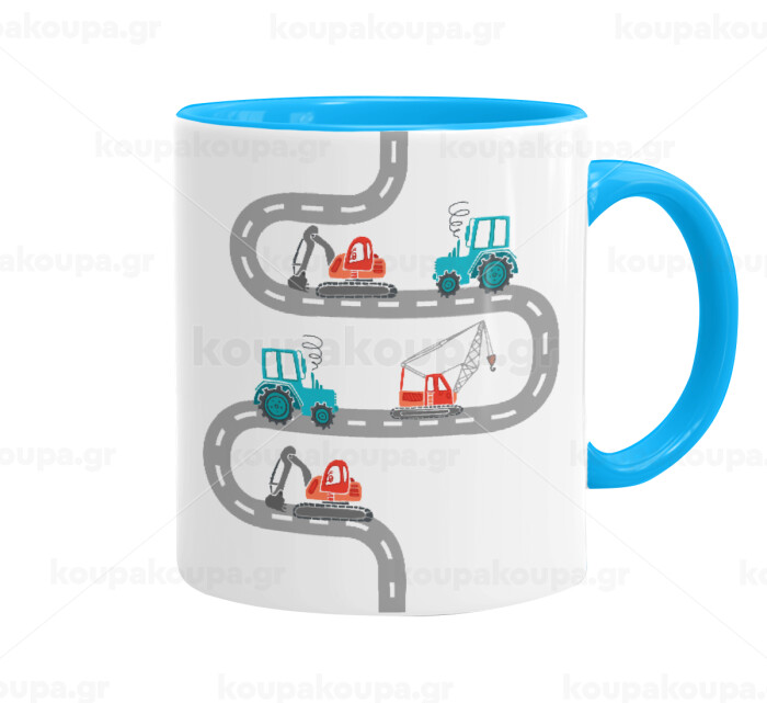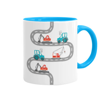 excavator along road, Mug colored light blue, ceramic, 330ml