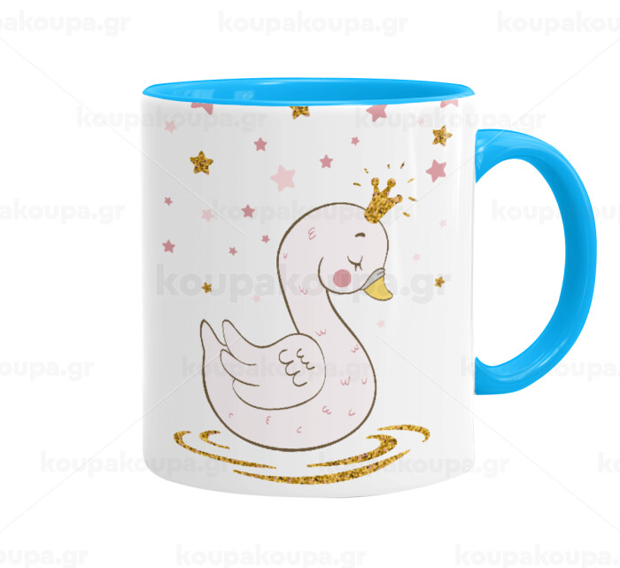 Crowned swan, Mug colored light blue, ceramic, 330ml