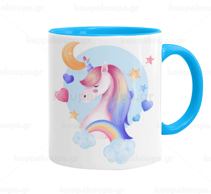 Cute unicorn, Mug colored light blue, ceramic, 330ml