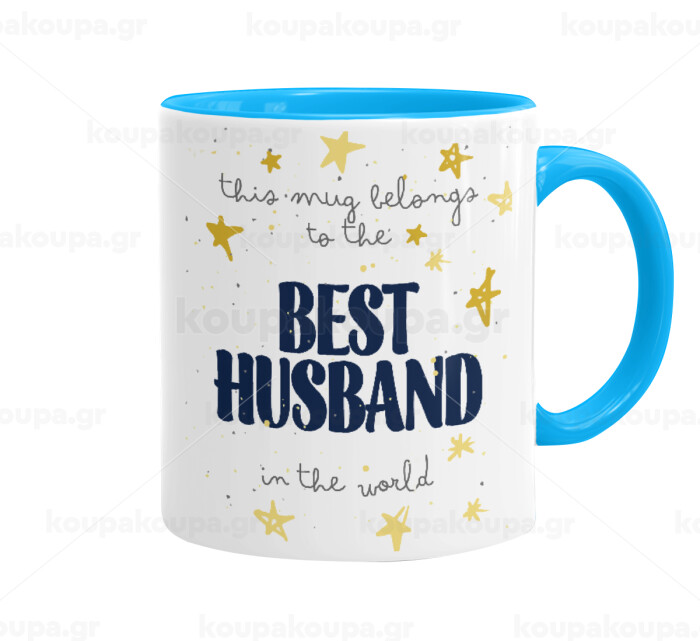 This mug belongs to the BEST HUSBAND in the world!, Mug colored light blue, ceramic, 330ml