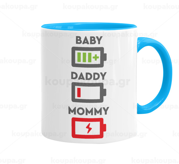 BABY, MOMMY, DADDY Low battery, Mug colored light blue, ceramic, 330ml