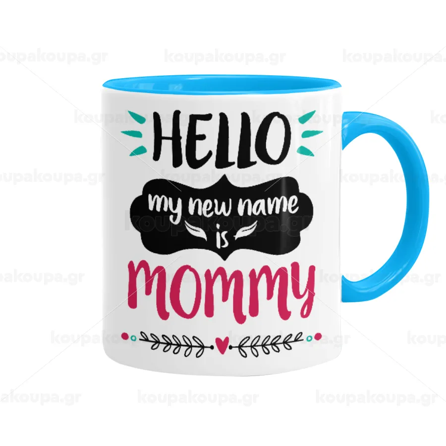 Hello, my new name is Mommy, Mug colored light blue, ceramic, 330ml