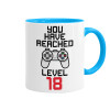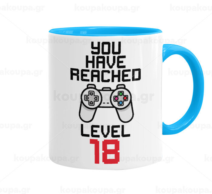 You have Reached level AGE, Mug colored light blue, ceramic, 330ml