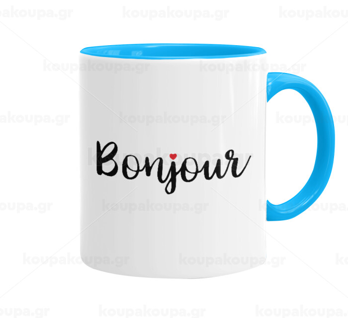 Bonjour, Mug colored light blue, ceramic, 330ml