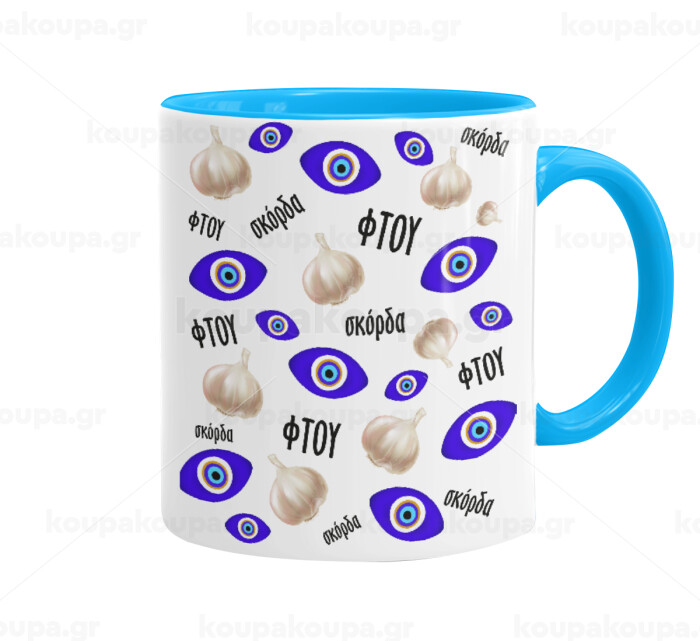 Φτου, φτου, σκόρδα!!!, Mug colored light blue, ceramic, 330ml