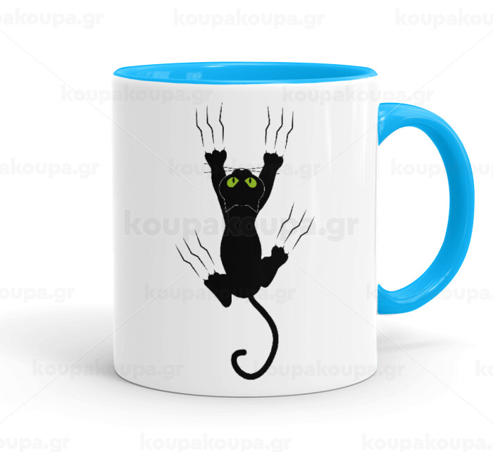 cat grabbing, Mug colored light blue, ceramic, 330ml