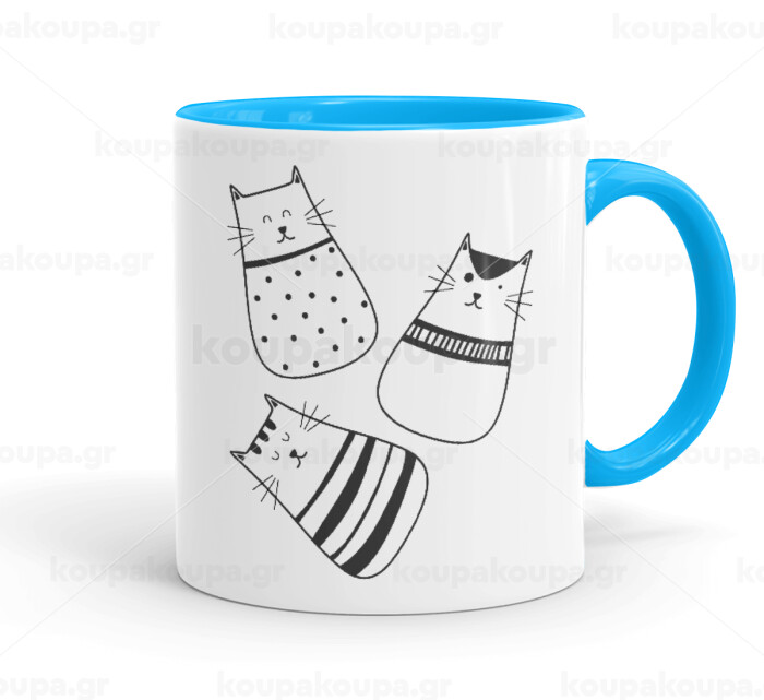 Cute cats, Mug colored light blue, ceramic, 330ml