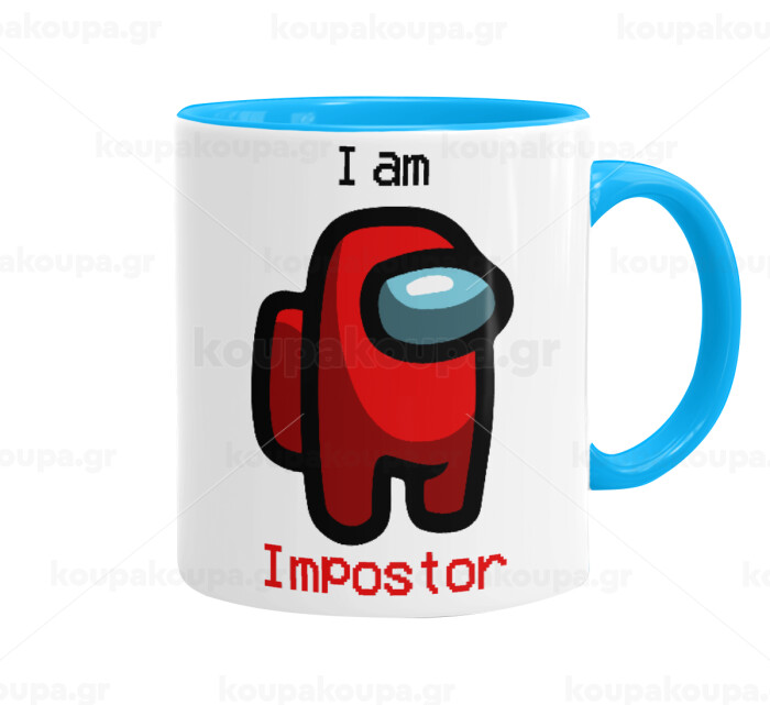 Among US i am impostor, Mug colored light blue, ceramic, 330ml