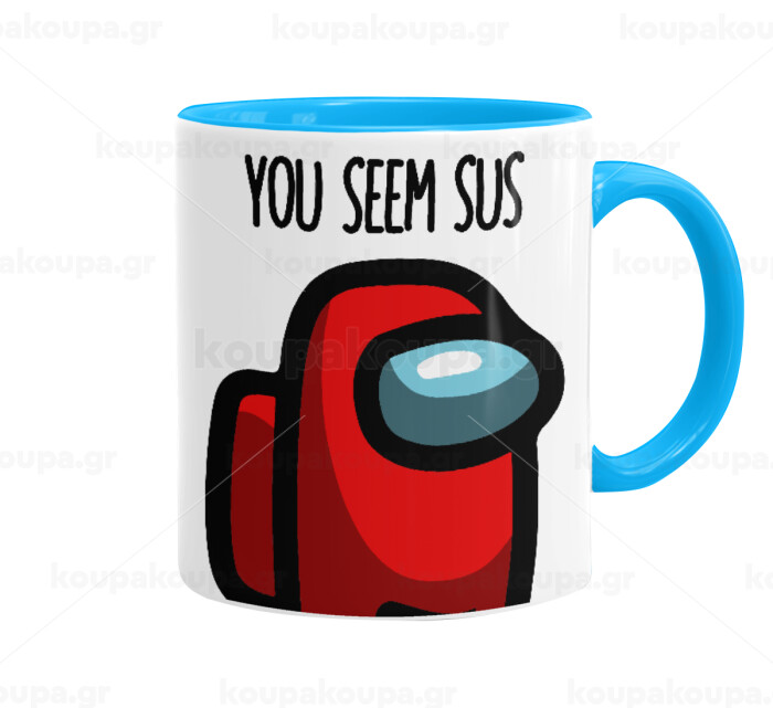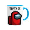 Among US, you seem sus, Mug colored light blue, ceramic, 330ml