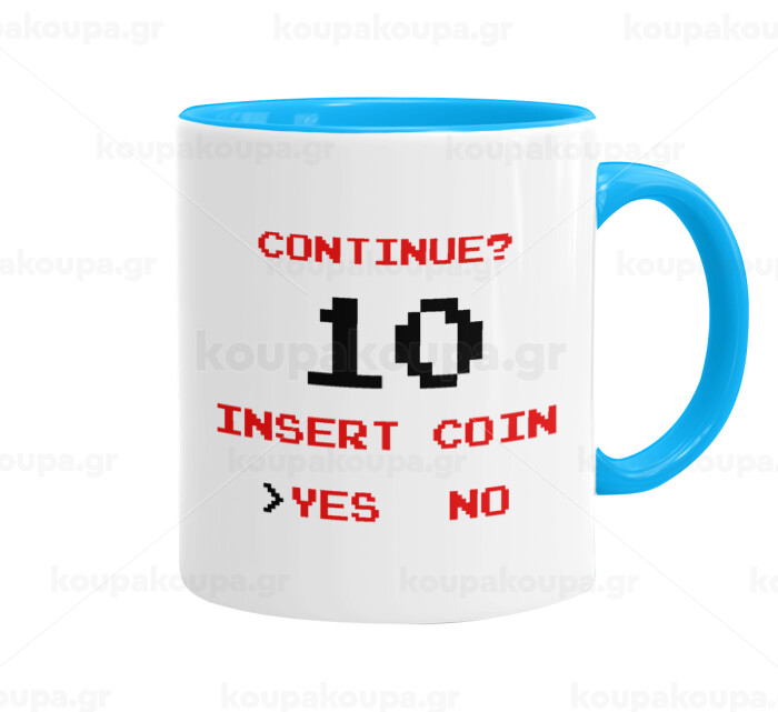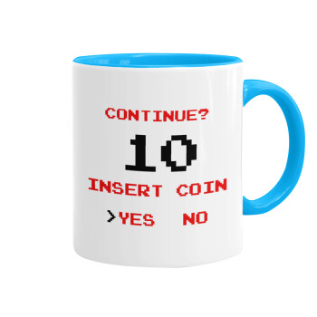 Continue? YES - NO, Mug colored light blue, ceramic, 330ml