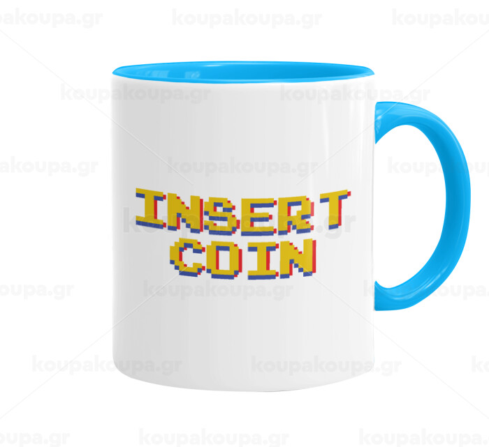 Insert coin!!!, Mug colored light blue, ceramic, 330ml
