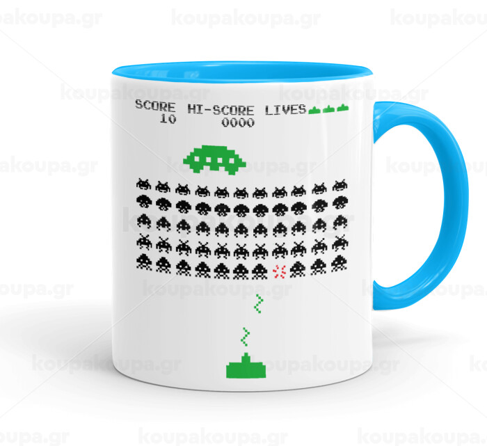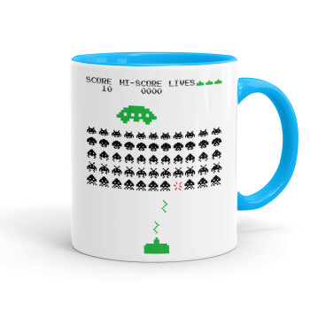 Space invaders, Mug colored light blue, ceramic, 330ml