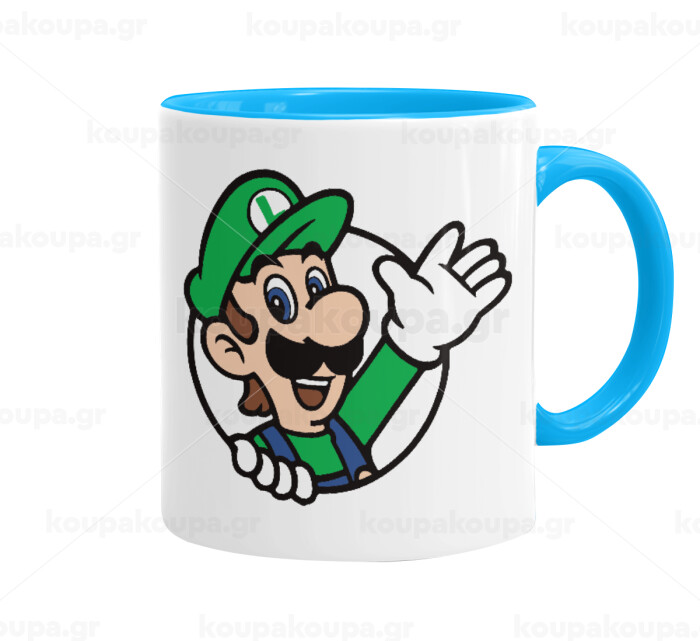 Super mario Luigi win, Mug colored light blue, ceramic, 330ml