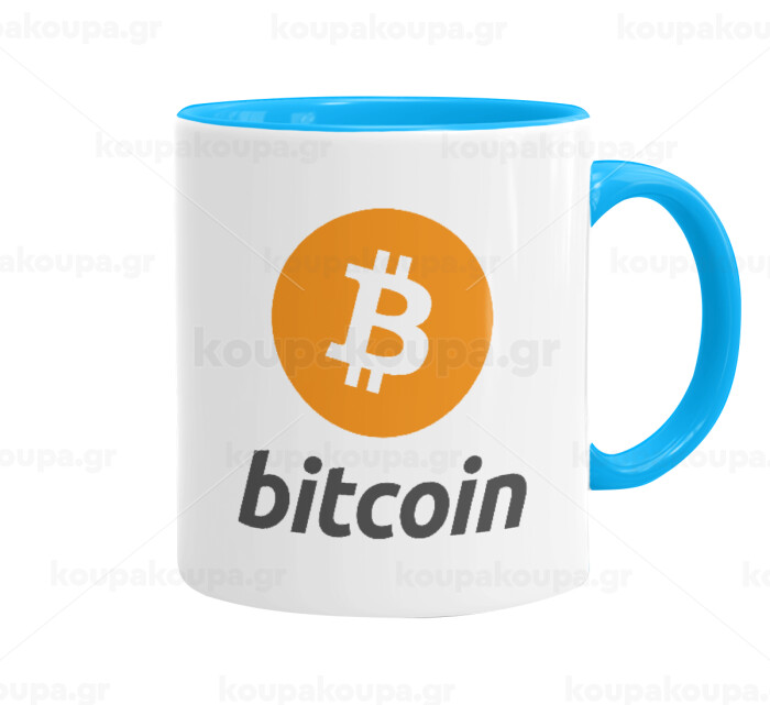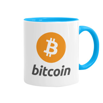 Bitcoin, Mug colored light blue, ceramic, 330ml