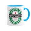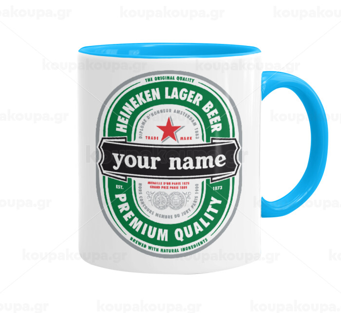 Heineken with name, Mug colored light blue, ceramic, 330ml