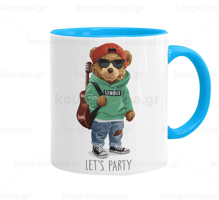 Let's Party Bear, Mug colored light blue, ceramic, 330ml