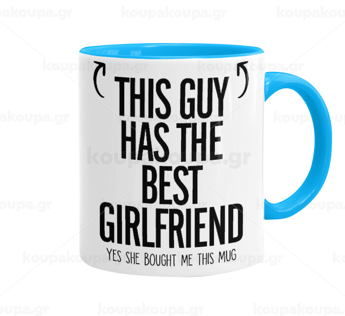 This guy has the best Girlfriend, Mug colored light blue, ceramic, 330ml