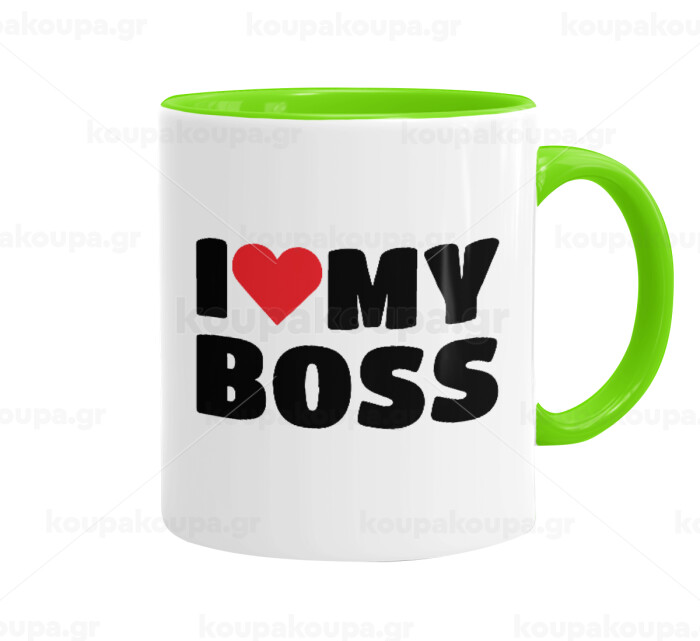 I LOVE MY BOSS, Mug colored light green, ceramic, 330ml