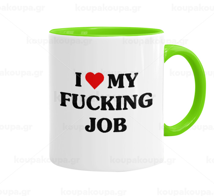 I love my fucking job, Mug colored light green, ceramic, 330ml