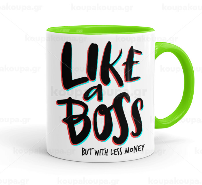 Like a boss, but with less money!!!, Mug colored light green, ceramic, 330ml