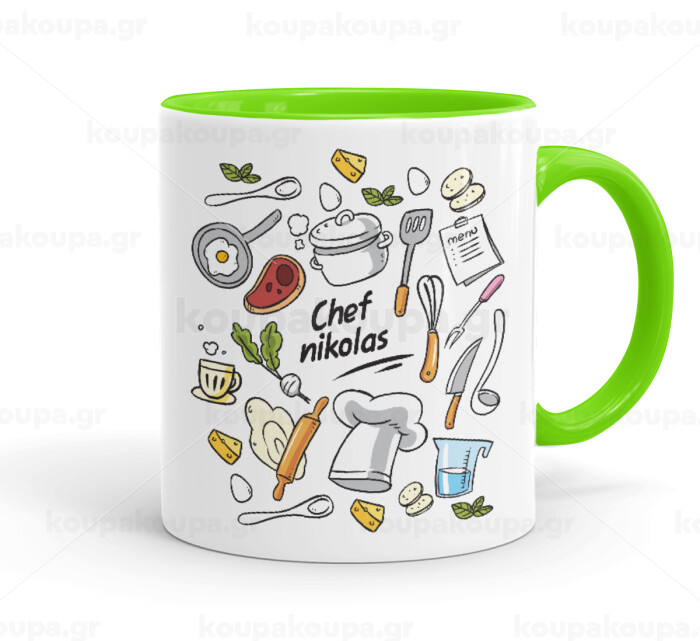 Chef με όνομα, Mug colored light green, ceramic, 330ml