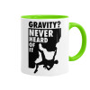 Gravity? Never heard of that!, Mug colored light green, ceramic, 330ml