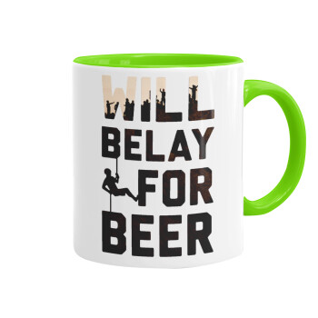 Will Belay For Beer, Mug colored light green, ceramic, 330ml