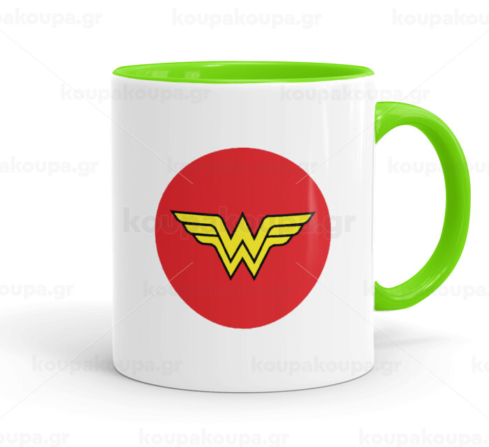 Wonder woman, Mug colored light green, ceramic, 330ml
