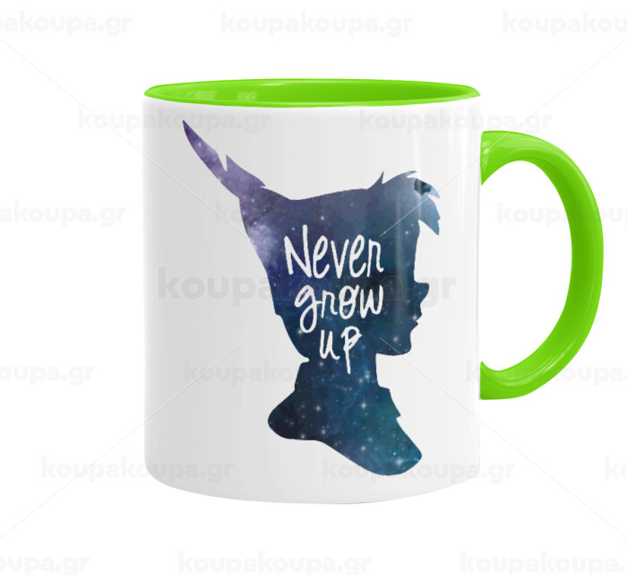 Never Grow UP, Mug colored light green, ceramic, 330ml