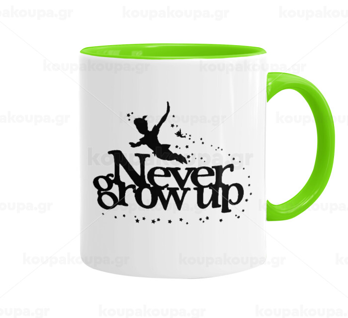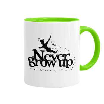 Peter pan, Never Grow UP, Mug colored light green, ceramic, 330ml
