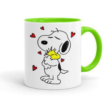 Snoopy Love, Mug colored light green, ceramic, 330ml