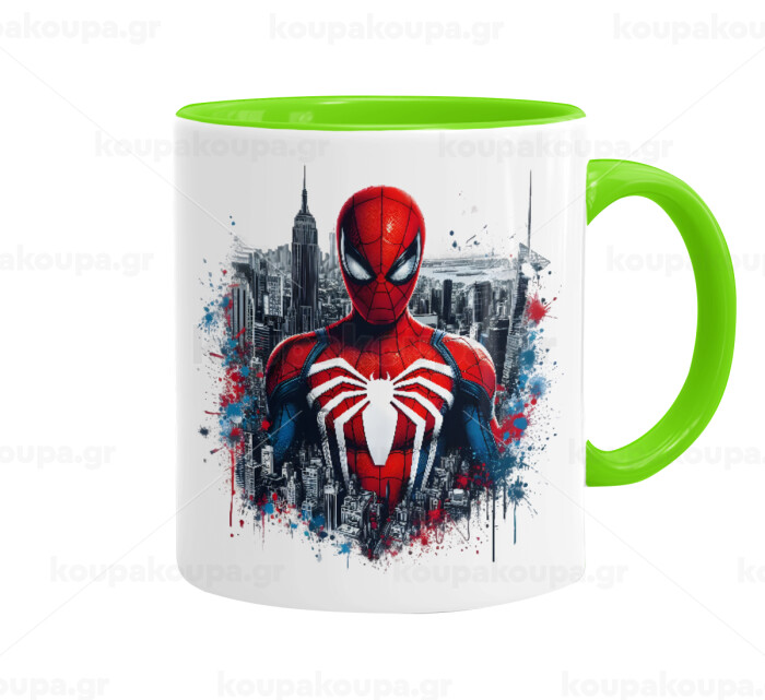 Spiderman City, Mug colored light green, ceramic, 330ml