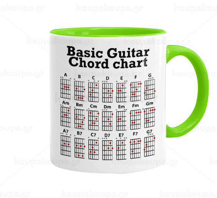 Guitar tabs, Mug colored light green, ceramic, 330ml