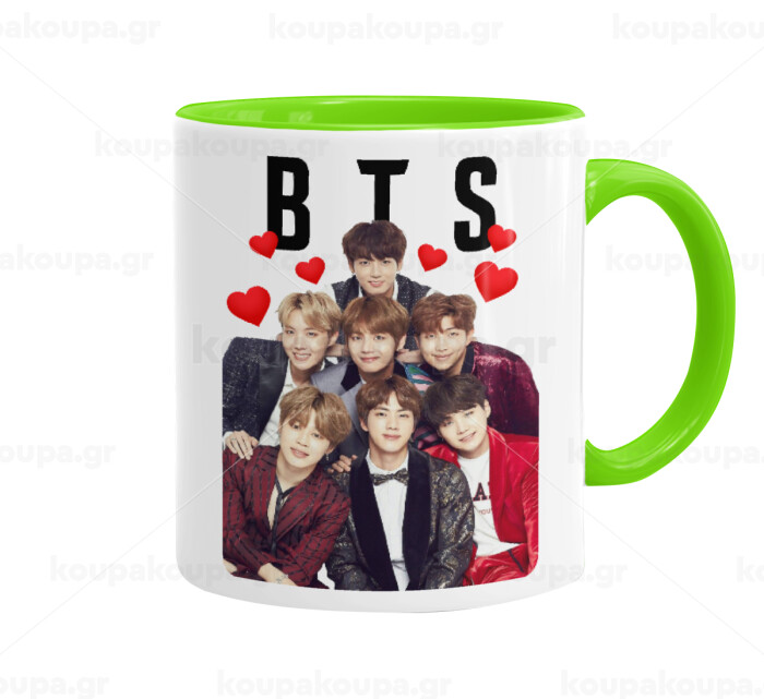 BTS hearts, Mug colored light green, ceramic, 330ml