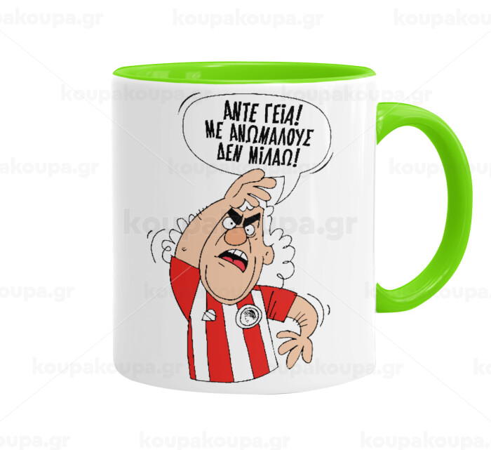 Τάκης, Άντε γεια, με ανώμαλους δεν μιλάω!, Mug colored light green, ceramic, 330ml