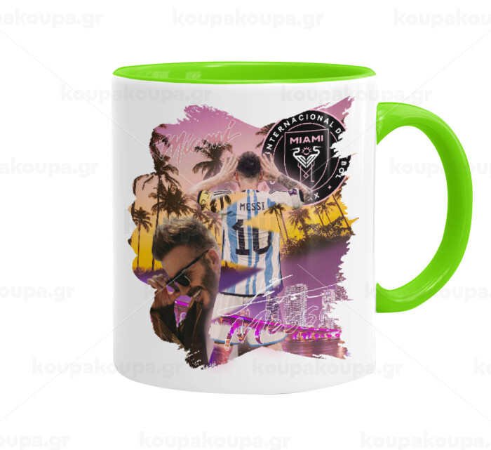 Lionel Messi Miami, Mug colored light green, ceramic, 330ml