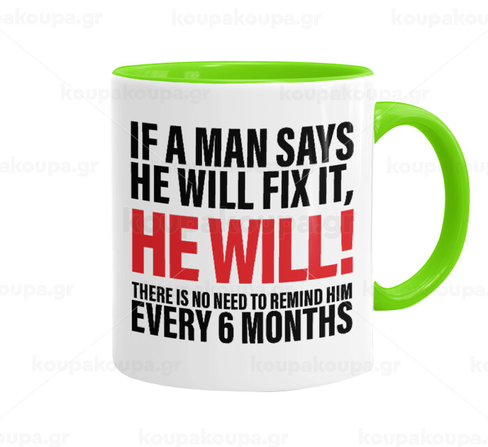 If a man says he will fix it He will There is no need to remind him every 6 months, Mug colored light green, ceramic, 330ml