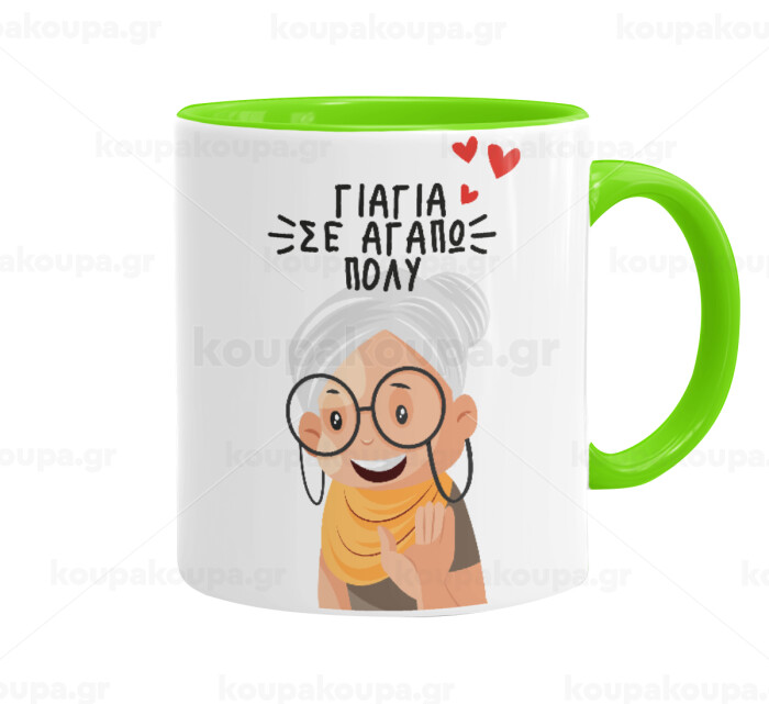 Γιαγιά σε αγαπώ πολύ!, Mug colored light green, ceramic, 330ml