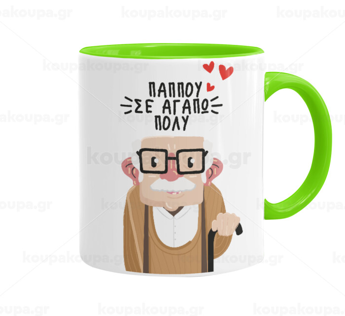 Παππού σε αγαπώ πολύ!, Mug colored light green, ceramic, 330ml