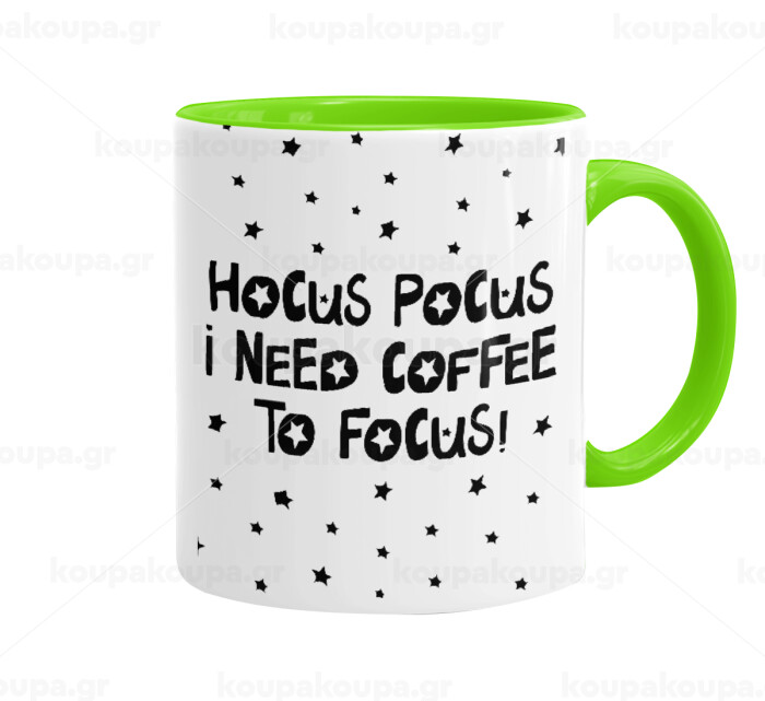 Hocus pocus i need coffee to focus - halloween, Mug colored light green, ceramic, 330ml