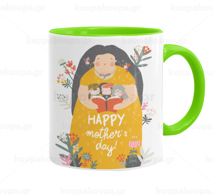 Cute mother reading book, happy mothers day, Mug colored light green, ceramic, 330ml