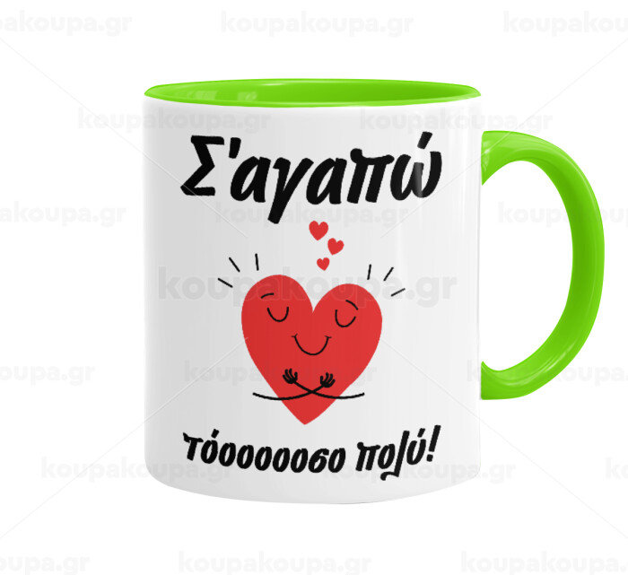 Σ΄αγαπώ τόοοοσο πολύ καρδιά, Mug colored light green, ceramic, 330ml