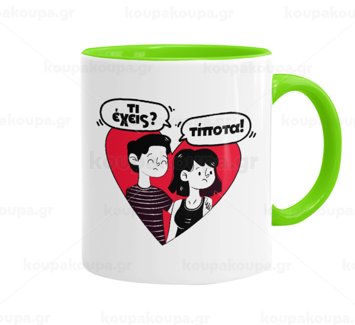 Τι έχεις? Τίποτα!, Mug colored light green, ceramic, 330ml
