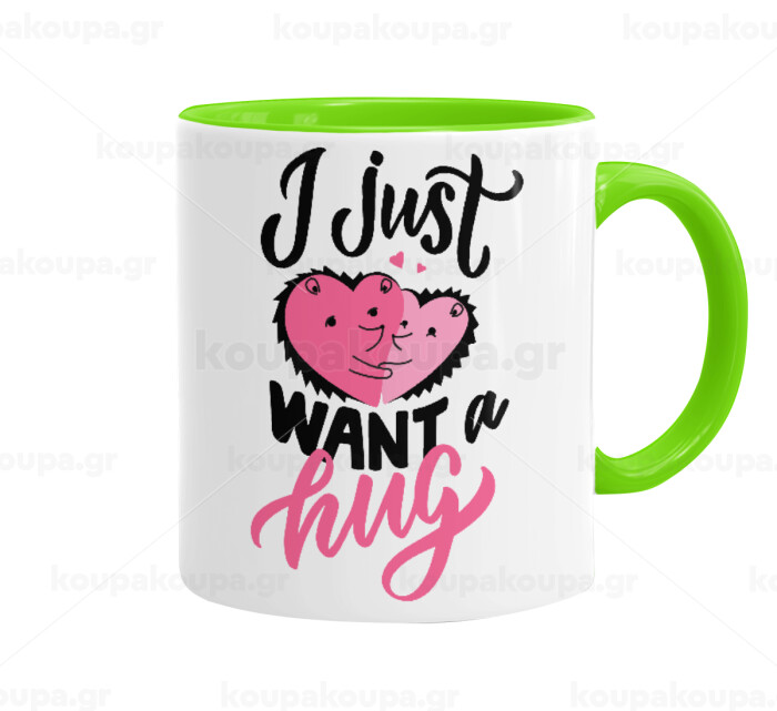 I Just want a hug!, Mug colored light green, ceramic, 330ml