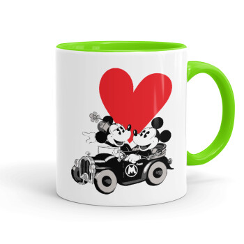 Mickey & Minnie love car, Mug colored light green, ceramic, 330ml